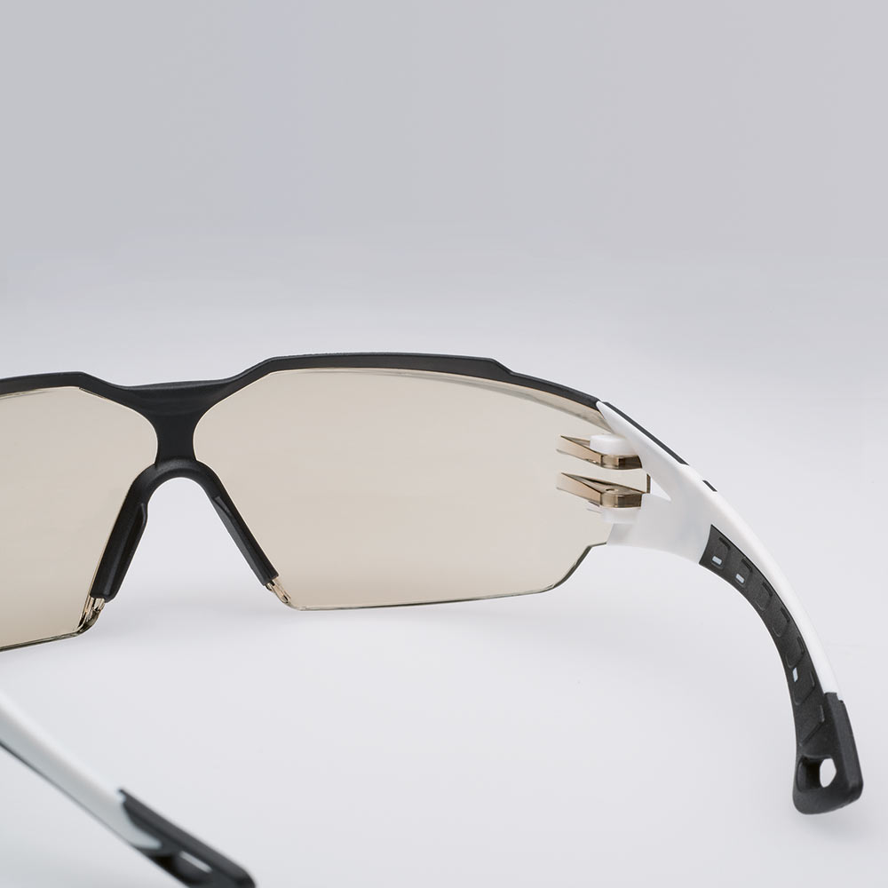 - schlanke Bügelgeometrie ermöglicht komfortables Tragen von Gehörschutzkapseln, Helm und Anstoßkappen