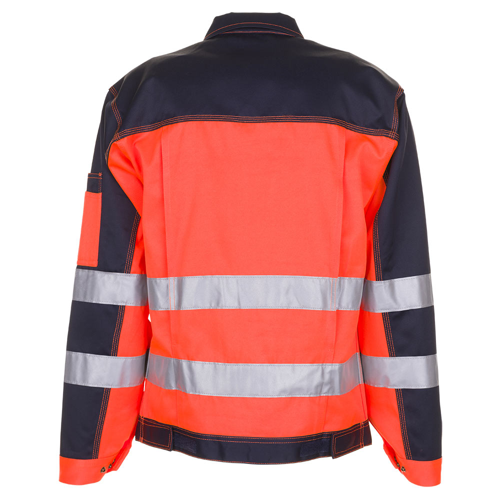 Material: orange und gelb: 85 % Polyester, 15 % Baumwolle Diagonal-Köper, ca. 290 g/m², einlauffest nach DIN EN ISO 6330 grün und marine: 65 % Polyester, 35 % Baumwolle Diagonal-Köper, ca. 320 g/m², einlauffest nach DIN EN 6330 Reflexband 3M™ Scotchlite™ Reflexgewe